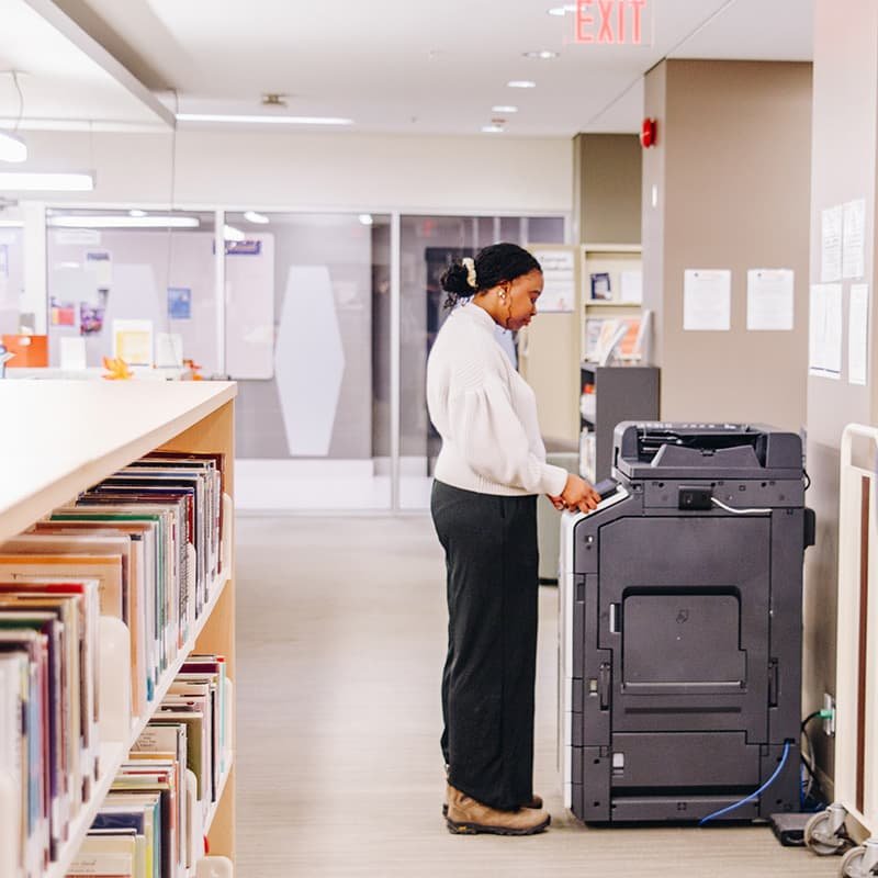 Photocopiers are available for printing and scanning. To find out about costs, along with instructions on how to print and scan, visit Resources for Printing.